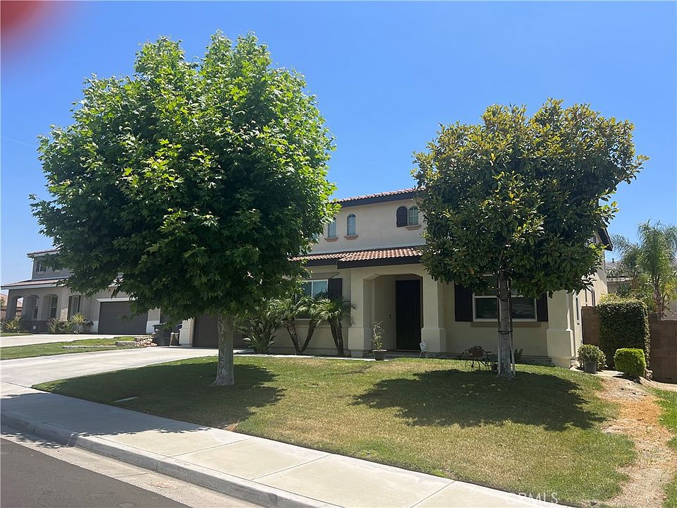 This lovely home is the one you have been waiting for! You don't want to miss this heavily upgraded six-bedroom home! As you enter, be delighted by the spacious and inviting living room and dining room with custom paint and 6-inch crown molding and baseboards. The first floor comes equipped with a bedroom and full bathroom ready for your guests. You will be impressed by the oversized kitchen. There's loads of cabinet space and ample room on the counters, a walk-in pantry, and a butler's pantry. Large family room with a custom fireplace, perfect for those chilly nights. As you make your way upstairs the master suite is to your left, complete with a separate shower and bathtub, dual sink and walk in his and hers closets. All five upstairs bedrooms have ample space. Window shutters in all upstairs bedrooms. Your backyard is definitely and entertainer's delight! Enjoy your sparkling saltwater pool and oversized spa that fits up to 10 people & a new patio. Stamped concrete, planters and block wall on all sides. Huge indoor laundry room with plenty of cabinet space and sink area. Attached four car tandem garage. Exterior of home was painted a week ago and is nicely landscaped. Centrally located near all amenities and easily accessible to the freeway. As if all this isn't enough, this beauty has NO HOA and has the lowest tax rate in Eastvale!
