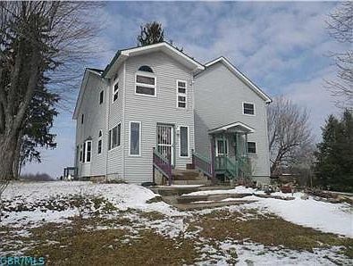 UNIQUE 2-sty. Duplex/Home on a 1.5 ac. lot w/mature trees, a 50x50 barn w/rear pasture, 50x50 add'l building used as garage/previous airplane hanger. Home is presently a duplex w/one side leased for $650/month - other side vacant. Each side offers 2 BR/2 BA, 1st flr laundry, equipped kitchen/dinette area, and living rooms. Separately metered utilities w/Delco Water/propane gas. GREAT opportunity to live in one side and lease other and/or extended family living arrangements.