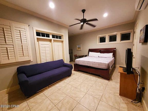 Beautiful three story beach house right across from Beach Access 12 in the desirable Panama Dunes. This property features a ground floor efficiency that can be rented separately boasting high ceilings, recessed lighting, craftsman doors, walk-in closet, kitchenette and laundry room. The second floor has an open kitchen/living/dining floor plan, hardwood flooring in living and bedrooms, and tile in the kitchen and baths. The kitchen is spacious with granite countertops and stainless appliances. There is also a guest bedroom and guest bath with surround tile shower and a glass door. There is a second laundry room on the second floor. The second floor has a private balcony overlooking the common areas. The third floor features the master suite boasting tray ceilings, crown molding, recessed