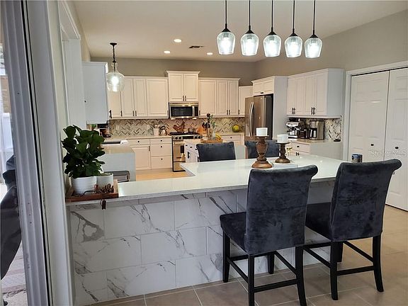 - Interior Features: Ceiling Fans(s), Eating Space In Kitchen, High Ceiling(s), Stone Counters, Solid Wood Cabinets, Thermostat, Kitchen/Family Room Combo, Built in Features, Tray Ceiling(s)