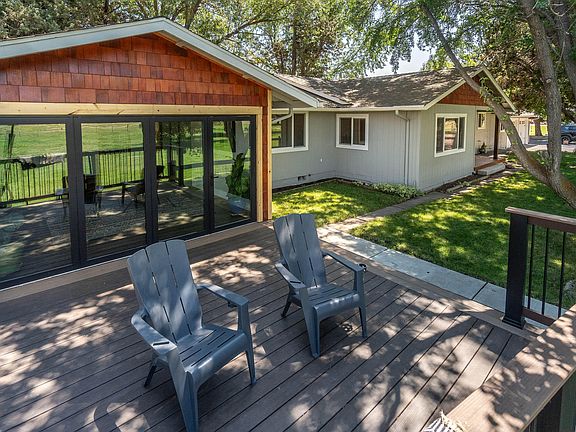 Discover a remarkable 10.4-acre hobby farm with a fully renovated 2,442 sq ft single-level ranch home. This gem features 4 beds, 3 baths, open concept, LVP flooring, high efficiency heating/cooling & Gourmet kitchen w/ Dacor appliances & soapstone waterfall counter. Glass bifold door for indoor/outdoor living. Primary with walk-in closet & updated tile shower. Multiple patios, wrap-around driveway & 440 sq ft building for an ADU conversion. 9 acres of irrigation, garden, shed, chicken coop & dog run. Barn with four stalls fenced and cross fenced for Horses or Livestock. Irrigation pond on property fed by district. 5 mins to eastside shopping & close to Badlands Wilderness. Don't miss this serene farm living!