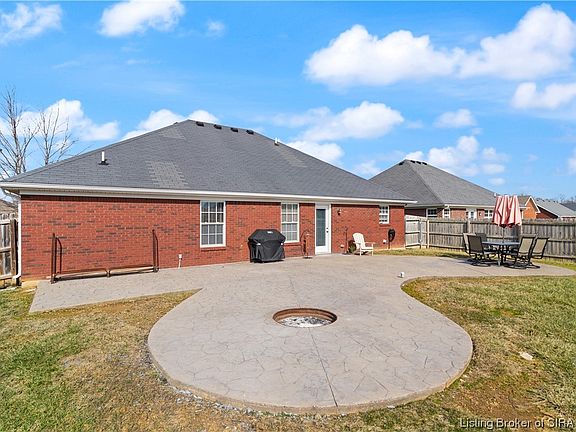 Outside, the fenced-in backyard boasts a beautiful stamped concrete patio, ideal for enjoying outdoor gatherings and the tranquility of the surrounding greenery.