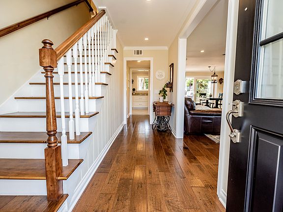 Tastefully remodeled 4 bedroom, 3 bath Stonebridge home awaits the most discriminating buyer. The hardwood floors welcome you and grace the living Room w/ fireplace and dining room. The Gourmet kitchen has a 36 inch KitchenAid dual fuel range, Thomasville Cabinetry, Shaw farm style sink and granite counters. There is 1 bedroom and 1 bath downstairs and 3 bedrooms and two baths upstairs. The master bedroom has raised ceilings, walk-in closet and spa-like bathroom. The 2 car garage has a built in loft for storage with pull down stairs. The home has recessed lighting throughout, and Milgard windows trimmed, with wood I/O. Additionally, there is dual zoned heat and air. There are many fruit trees in the large backyard, and opportunity for a sports court, pool or garden. Ready to move in.