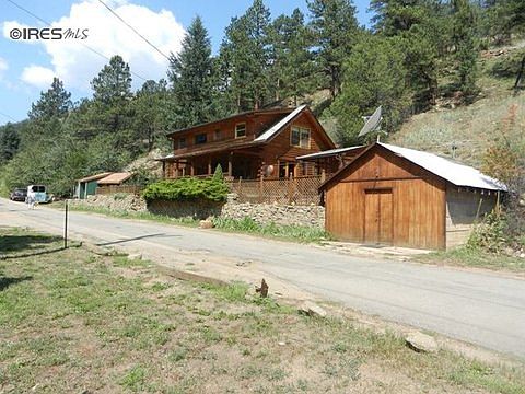 Beautiful sunny S. facing log home located in historic Wall Street, only 20 min. from downtown Boulder.Built in 1986, features open kitchen with slab granite, Hickory wood floors, dining area, doors leading to outside patio.Large family rm w/ wood fireplace.2 big bedrooms upstairs & nice full bath + loft/office & balcony.Great covered front porch for sitting & listening to the stream.Don't miss out on this opportunity.