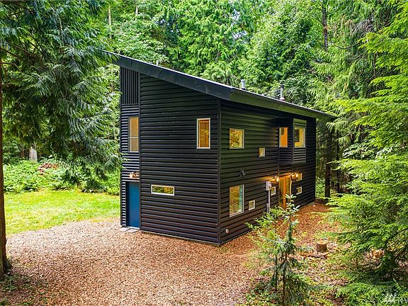 Modern, custom, architect-designed. 2bed, 1bath home on @ 2.5 ac. of old growth forest on Guemes Is. in the San Juans. Designed for low maintenance & to bring the outside in: industrial grade steel siding & roof, polished concrete floors, 12" insulated walls, deep-silled south-facing main windows, 2nd story pop-out glass reading nook, tall 3-pane folding glass exterior door, private balcony & much more. Very successful vacation rental; sold turn-key. Close to many beaches; crab, fish, sail!