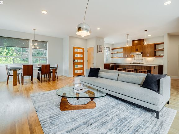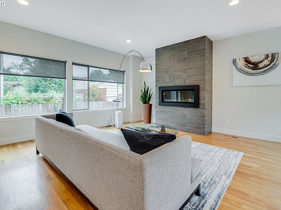 Contemporary light filled home, walking distance to Wellington Park & minutes to NE Fremont restaurants & shopping. Open concept living perfect for entertaining, modern finishes, beautifully tiled gas FP, light wood floors, sleek kitchen w/quartz counters, walnut cabinetry & island seating. Office/5th bedroom on main. Lower level features a bonus/family room, 2 beds & bath. Luxurious master suite with private balcony, vaulted ceiling, tiled shower, soaking tub & floating double sink vanity.