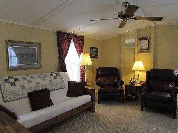Charming beautifully maintained home in Pleasant Garden! 2 BRs, 2 baths, lots of counter space, eat-at bar, kitchen appliances remain. Covered deck, carport & wired storage building. New exterior paint, roof was kool sealed in 2014. Seller has home warranty. Very nice home on large 1+ acre lot.