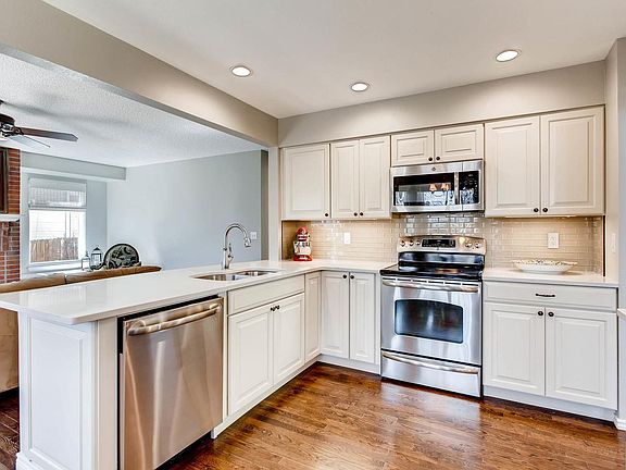From the moment you walk in the front door, this house feels like home. Stained oak floors go throughout the main floor, including a very recently remodeled kitchen with quartz counters and stainless appliances, open to a family room with a gas log fireplace. The large, updated windows let plenty of light in. Upstairs holds 3 bedrooms, including the master suite with mountain views. The finished basement adds a warm living space perfect for watching movies or a game, and a bedroom and 3/4 bath that guests will love. There's a beautiful flagstone patio in the backyard for grilling and relaxing. Location is a huge plus, steps away from The Ridge at West Meadows Park with tennis courts, playground. a basketball court and a mile-long path around Hine Lake for running or walking. Walk to all schools -- elementary, middle and high schools -- without crossing a busy street.
