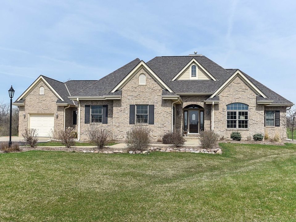 Spacious ranch, right between Chicago & Milwaukee is ready for new owners! Vaulted archways & ceilings! Huge KIT w/granite counters & cherry cabs. GR, DR & KIT have great views of private 1.2 AC lot. MBA: 2 sinks, jetted tub & heated tile floor. LL: exquisite, secure wine cellar, TV area, full BA, extra BR. Lovely landscaped yard w/irrigation system abuts conservancy. Stunning 2015 stone patio, seating wall & fire pit, the perfect place to enjoy amazing sunsets. New septic system installed October 2018! Hiking trails, fishing ponds & acres of green space. With easy access to I-94, this executive ranch is not to be missed!