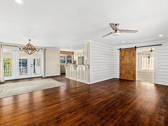 Beautifully remodeled Lake home only 5.4 miles to interstate access. Home features: Open floor plan with hardwood flooring throughout main level living area and wood wall accent features. Kitchen has newer cabinets with granite countertops and eat in bar area. Decorative fireplace in living room with French doors to massive screen porch as well as open deck area looking over lake, perfect for entertaining. Master suite has double vanity sinks, tub and large walk in tile shower as well as ex large walk in closet. Far end of home was converted to large guest suite or use as man cave/ game room. Full walk out basement could easily be finished out for additional bedroom or living space. 3 car carport & circle drive as well as pull around vehicle access to waterfront. Seasonal water but has access year around on Ryan's Creek easy walk to water with swim pier. As close as you will find to Shopping, Cullman City & Interstate. Use as Commercial use on this home as well, gateway to Smith Lake.