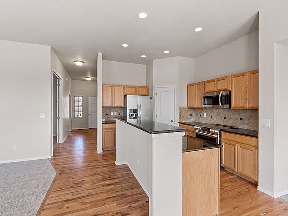 Light, bright and open, 3 bedroom, 2 bathroom ranch style property with plenty of room to grow. Located just off walking trails and Bluestem Prairie Open Space. Beautiful hardwoods lead from the main entry into the gourmet kitchen which features granite countertops with a high-top breakfast bar, tile backsplash, induction cooktop stove and Bosch dishwasher. Next to the kitchen, the dining area walks out onto the covered patio, perfect for outdoor meals and barbecues! Upgrades include: rough in plumbing in the basement, A/C, new carpet, and a new roof in 2020. Easy commute to Ft. Carson, Schriever & Peterson. Call this house home just in time for summer!