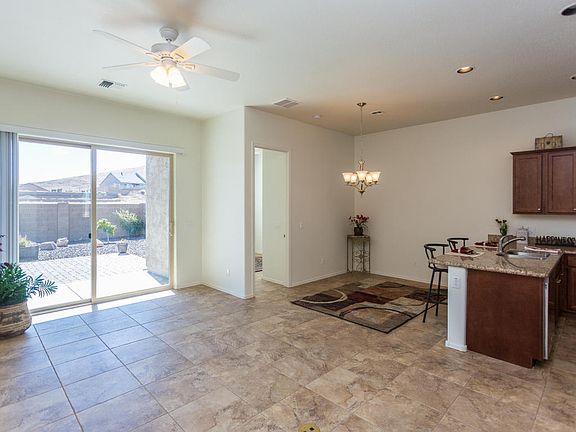Mountain views from this 2016 built 3 bedroom patio home. Inside feature 16 inch tile in all except master and second bedroom. Nice master suite with large walk in closet, double sinks, large shower, lots of storage. Open concept living, dining and kitchen with granite counters, stainless steel appliances. Front hallway with solar tube for natural light. Extended garage has been plumbed for a laundry tub. Laundry room with washer/dryer. Entire house has blinds and move in ready.Enclosed entry courtyard with gate, pavers. Nicely landscaped front and back yard with block fence, gate, raised bed garden, extend uncovered paver patio area and 220 installed for hot tub. HOA takes care of front yard, exterior of property and roof. Backs to wash for added privacy.