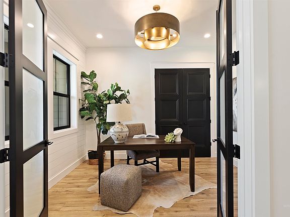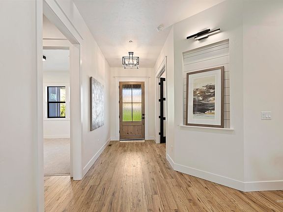 Stunning new construction home in Star on .66 acres, featuring a 50' deep RV garage, new fence & NO HOA. This exquisite residence offers 3 bedrooms, an office, 3.5 bathrooms & 4-car garage (20Wx26D) with RV Bay (16Wx50D). Enjoy an open floor plan with gourmet kitchen that includes custom cabinets, quartz countertops, pantry with appliance counter, pot filler, farmhouse sink & upgraded Thermador stainless steel appliances: built-in refrigerator, Wi-Fi compatible double oven, 6-burner cooktop & custom hood. The great room features a gas fireplace, built-in cabinets, trey ceiling with beams & 12' sliding glass doors. The master en suite boasts beams, patio access, a walk-in tile shower with two showerheads, dual vanity & closet. This three-way split plan includes an additional en suite bedroom plus another bedroom with a bathroom next to it. Additional highlights are LVP floors, upgraded carpet, laundry sink, half bath & mudroom space. Huge yard space & 33x12 foot back deck to extend your living outside.