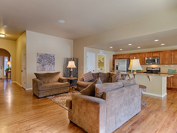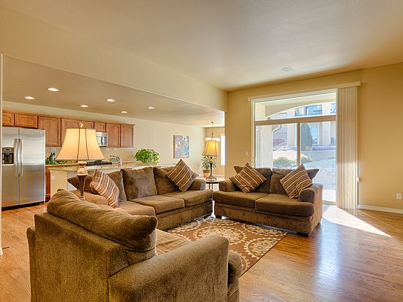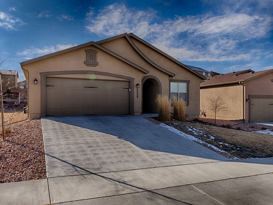 Beautiful, ranch-style design provides ease of main level living in the Haven at Cumbre Vista where lawn maintenance & much of the snow shoveling is done for you! Stucco exterior, 3 beds/2 baths/2 car oversized garage & a full unfinished basement. The open floorplan features: Hardwood floors throughout the main level, spacious kitchen w/ eat-in island, slab granite counter tops, gas range top, stainless appliances, & maple cabinets. Enjoy separate dining area off of the kitchen. Covered patio allows year-round enjoyment. Master suite w/ adjacent 5-piece master bathroom w/ spacious walk-in closet, oversized shower, and garden tub. Bathrooms w/ automatic closing toilet lids. Built-in speakers. Oil rubbed bronze hardware. Plus, experience a whole other world of possibilities with the full unfinished basement that includes rough-in for a future bathroom. Why wait to build? This is the one you have been waiting for! Enjoy the community park, plus the home is near Penrose hospital, and all the wonderful shopping and dining in Briargate and the Powers corridor.