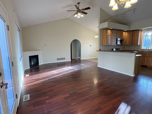 This 3 bedroom/ 2 bathroom Ranch style home is conveniently located and on over an acre of land! The house is situated on the lot that maximizes privacy, providing a peaceful place to call home. Vaulted ceilings and a spacious entry invite you in where you will find open living and dining area. The Kitchen boasts stainless steel appliances and a breakfast bar. Gas fireplace to cozy up to and durable flooring throughout. Large master with a huge walk in closet! Separate laundry area, oversized two car garage and back deck perfect for grilling. This house has a HRV system making it more energy efficient. Water is included. Pets are on approval. Available July 1st!