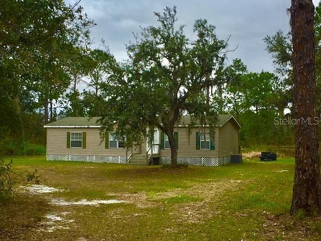 Tired of traffic and neighbors living too close? Come see this wooded 5+ acres off the beaten path. Lake county records say it is 5 acres, but survey says it is 5.54 acres (more or less). The 3 bedroom/two bath double wide mobile home has a wood burning fireplace in the living room, split bedroom plan, inside laundry facilities, large eat-in kitchen and separate dining area. Horses are welcome in the partially enclosed wire fenced pasture.