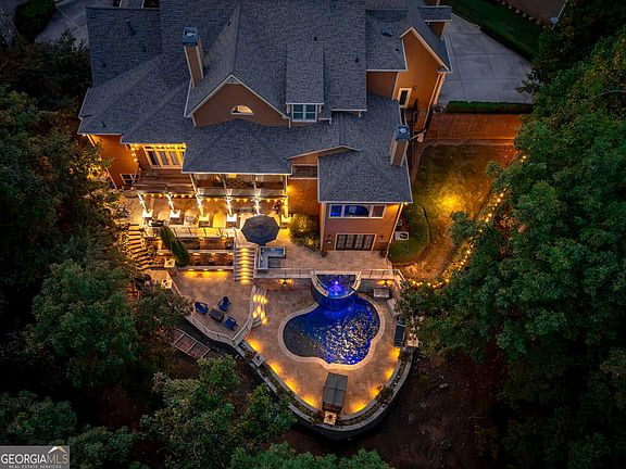 Priced Below Appraisal! Plus!!- 2 new hot water heaters and new HVAC with 10 year warranty - Luxury, Lifestyle & Lake in coveted Marina Bay neighborhood. Set within a secluded cul-de-sac, behind it's round-a-bout driveway, this 7 br/7.5 ba. custom-crafted, three level home offers remarkable year-round lake views, private lake access, and a designated boat slip (E-8) at the community's marina-an essential asset in high demand. Designed for both comfort and grandeur, this gorgeous home features four gas log fireplaces, a formal dining room seating 12+, and a private office complete with French doors, built-in bookshelves, a gas log fireplace, and an arched window-all exuding executive confidence. For culinary enthusiasts, the home includes two gourmet chef's kitchens, providing exceptional spaces for both intimate dinners and large-scale entertaining. Both owner's suites-one on the main level and another on the terrace level-offer serene retreats with premiere touches throughout. The grand two-story great room features exposed wood beam ceilings and a striking wall of recently upgraded Pella windows, bathing the interior in natural light and warmth with picturesque views of nature and the lake! The entire main level features newly installed light wood flooring, enhancing the elegant, airy ambiance and fresh paint to accent the light and bright essence of the home. The terrace level stands as a true sanctuary for relaxation and entertainment. It features a custom-built dining booth with warm wood and mirrored accents, ideal for cozy meals or gatherings. A theater room complete with plush reclining seating and soft tray lighting, setting the scene for unforgettable movie nights. The expansive lounge area boasts a sleek double-sided fireplace offering a well-designed separation to the open area experience. While the fully equipped home gym offers a dedicated space for wellness. The terrace-level owner's suite opens directly to a resort-style stone hot tub that flows seamlessly into the stone-edged pool below, creating an unparalleled private retreat. Step outdoors to discover the epitome of luxury with a magnificent heated pool highlighted by a waterfall from its infinity-edge hot tub above, all illuminated by customizable LED lights. The multiple fire pits, stone terraces, and comfortable seating areas provide the perfect settings for evening relaxation or gatherings with family and friends. Open the doors from your chef's kitchen to a covered patio with rustic stone pillars and accent lighting for an evening of al fresco dining and entertaining. The expansive, meticulously landscaped lake lot features 120 feet of pristine lake frontage and tiered gardens that capture stunning views of Lake Lanier and its surrounding nature. The estate's attention to detail reflects a commitment to elegance and unrivaled craftsmanship. Discover the unmatched luxury and warm embrace of lakeside living at 6225 Random Winds Bluff-where timeless design and thoughtful amenities blend seamlessly for an exceptional lifestyle. Lease/Purchase would be considered by seller.