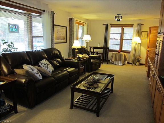 One-level Ranch style home. Privacy on 2.05 acres just outside of Madison-Mayodan. Well built 3 bedroom, 2.5 bath brick home. Large living room with bay window. Dining room and den with fireplace. Double carport with large paved parking pad. Almost new heatpump/central air(installed 2011). Covered front porch. Lots of wildlife. This home has lots of privacy but very convenient to town.