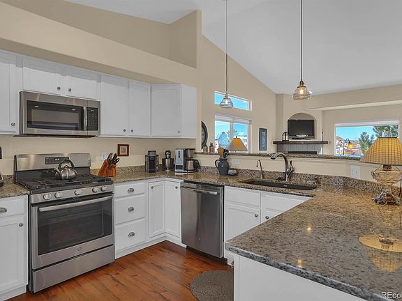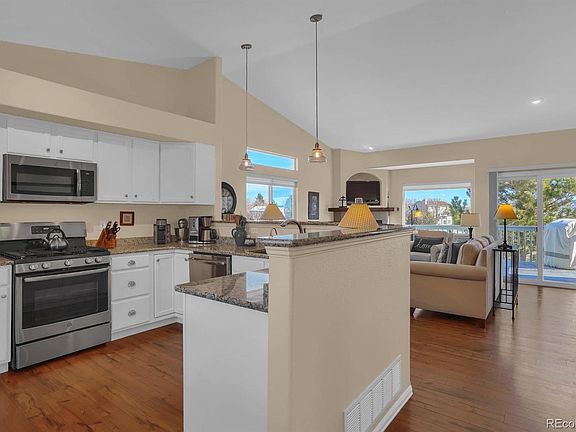 This 3 bed/2 bath REMODELED ranch style home is very warm, inviting, and well-maintained. It sits on a quiet cul-de-sac with mature trees and a beautiful back yard. Main level features eat-in kitchen with stainless steel appliances, granite countertops, counter bar, and an amazing view of the front range. You'll also find the living space with gas fireplace and easy access to the back deck with more incredible views of the open space & surrounding city. Large windows allow for tons of natural light throughout the day! Retreat to the master bedroom with spacious walk in closet, it's own private view, and the ensuite master bath with double vanity and granite countertops. Main level also has an additional bedroom, laundry room, & full bathroom. Downstairs basement area you'll find a convenient walk-out to back yard & the third bedroom that can be used as an office, family room, or playroom. Unfinished part of the basement has tons of storage space!