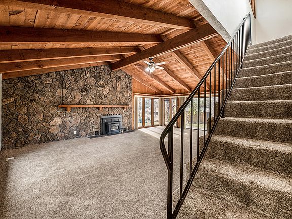 Gorgeous small acreage in NE Bend's Wallace Acres rural subdivision! Nestled on a peaceful cul-de-sac, this 4 bedroom, 4 bath, 2806 sqft two story home sits on 2.17 acres with 2 acres of COI irrigation rights. The home boasts a spacious living room with wood and stone accents, vaulted ceilings, ceiling fan, and a cozy pellet stove, plus a stunning wall of windows that flood the space with natural light. The family room, complete with a woodstove, is ideal for relaxing or enjoying hobbies. A charming kitchen offers a breakfast bar and vintage touches. The upstairs primary suite features wood accents, a walk-in closet, and a private bath with a double vanity. Additional highlights include a built-in sauna, jetted tub, and a 672 sqft barn. The parklike setting, with mature trees, a lush lawn, and a patio, is perfect for entertaining. Enjoy country living while being just minutes from schools, shopping, and the medical center. Don't miss this incredible opportunity. Call your broker today