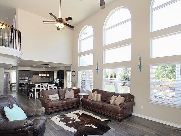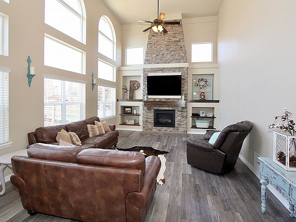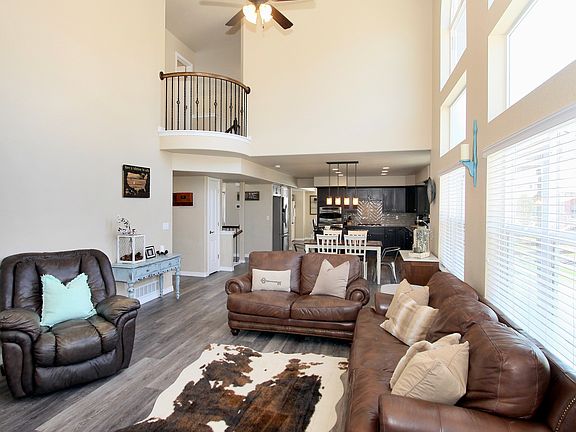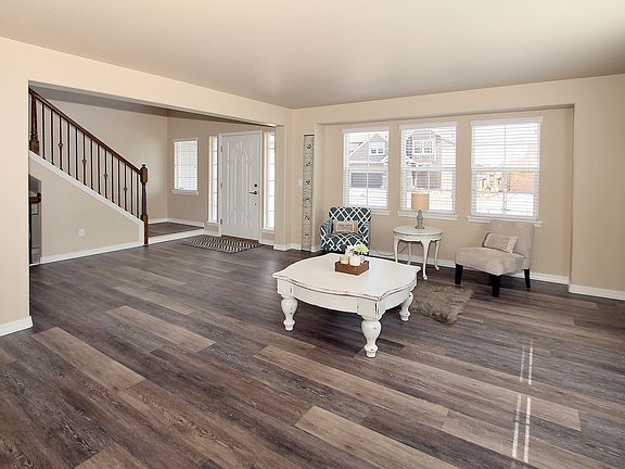 Gorgeous, highly sought after Classic Homes Windsor floor plan! 4,385 sf 2-story home with a finished basement, soaring 18' ceilings, gorgeous upgrades and landscaping. One of the most desirable floor plans due to the open concept, extended family room, amount of natural light and stunning floor to ceiling stone fireplace. Beautiful new high-end LVP flooring throughout the main level, iron stair railings, kitchen with sleek cabinetry, granite counters, subway tile backsplash, herringbone accents and stainless appliances. Vaulted master bedroom has French doors leading to 5-pc bath with granite counters and a walk-in closet. Good sized 2nd & 3rd upper level bedrooms and landing overlooking the family room below. Very spacious basement recreation room. Fourth bedroom has a large walk-in closet. 24' x 10' covered back patio overlooks the back yard and flagstone fire pit patio complete with a stone seating area. Forward facing 3-car garage and a wide driveway. Walking distance to D20 Ranch Creek Elementary, parks, community swimming pool and recreation center. The community of Wolf Ranch offers over 30 acres of open space & parks, 10 miles of trails, a 14 acre lake and variety of community recreation amenities.