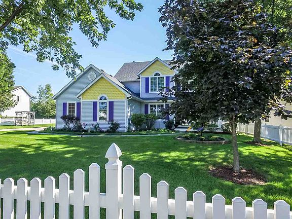 This custom built, ONE OWNER, Delagrange Home is a MUST SEE! It features 3 bedrooms, 2 ½ baths with the master on the upper level. It has a spacious walk in closet, separate jetted tub and dual sinks. The open concept living room includes a wood burning fireplace and built in bookshelves. The eat-in kitchen is adorned with Harlan cabinets, a large island and Mannington luxury floors. This home has new light fixtures, fresh paint, 6 panel solid wood doors throughout, and the roof is only 5 years old! Downstairs you will find a full finished basement with an entertainment area featuring a built in movie projector with retractable 72" screen, AND built in bookcases and cabinets. Garage has extended area for workbench and pull down stairs leading to the floored attic. Outside you will find a professionally landscaped yard, mature trees, and many perennials for easy maintenance. Enjoy sunsets on the NEW Trex front porch. Other outdoor features include covered outdoor swing, basketball hoop and custom brick patio for entertaining, and a PVC vinyl white picket fence. This home has been meticulously maintained inside and out!