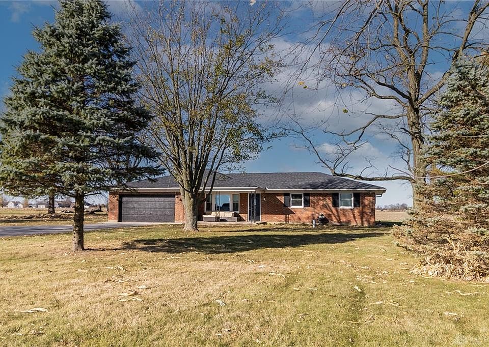 Wonderful 3 bed/1.5 bath country brick ranch home w/ separate living spaces & great country views, situated on a .75 acre lot w/ mature trees in Arcanum School District! UPDATED & NEW IN 2022: WINDOWS, ROOF, HEAT PUMP/CENTRAL AIR, & FRESH PAINT THROUGHOUT! Welcoming covered front porch, living room w/ large picture window, and open concept family/dining/kitchen w/ a cozy brick surround wood burning stove insert! Patio doors lead to the concrete patio for relaxing after a long day. The kitchen features an eat-at bar and room for a dishwasher. 1/2 bath and laundry off the kitchen and access to the hallway. Down the hall, find an updated full bathroom & 3 nice-sized bedrooms with closets. New heat pump furnace & central air! Newer windows, updated flooring in the main living area/bathrooms, and painted hardwood floors in the bedrooms. Paved drive w/ extra parking area, 2-car attached garage, storage shed, and much more! Big ticket items are all taken care of - call to tour this awesome home and move in before the new year!