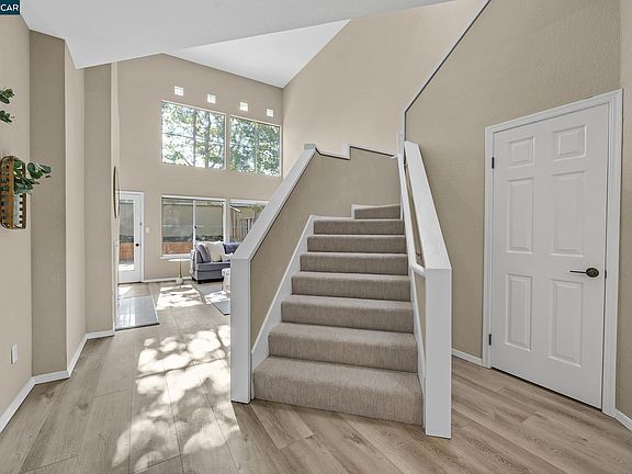 Light and bright townhouse style condo in the coveted Canyon Lakes neighborhood. The soaring ceilings of the living room welcome you into the home. Large windows bring in plenty of light throughout the main floor living spaces. The kitchen features brand new countertops, newer stainless steel appliances and a breakfast nook. In between the kitchen and living room is a conveniently situated dining room looking out onto your private back patio. Rounding out the downstairs is a powder bathroom and the laundry room which has plenty of cabinetry. Upstairs you will find a primary suite, a loft and a junior primary suite. The primary looks out onto the back patio and has tall, pitched ceilings. The primary bathroom has a large walk-in closet, two sink vanity, tub with jets and a stall shower. The junior primary is just across the spacious loft. The junior primary suite also has tall, pitched ceilings and the ensuite features a walk-in closet, long vanity with plenty of counter space and a shower over tub. The back patio is simple and tranquil. The wood decking provides the perfect spot for outdoor dining or entertaining.