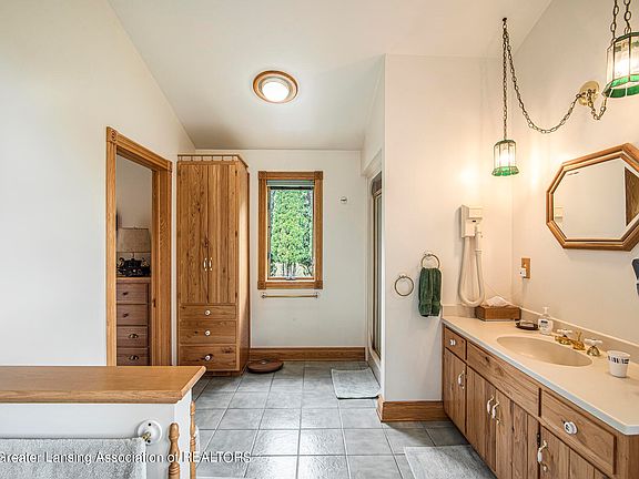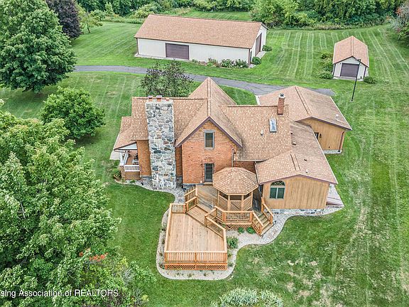 Welcome to a country home in Vassar with 2 separate parcels totalling 16.7 acres. This home has been striped to the studs and updated the plumbing, electric, insulation. windows, furnace fireplace with stone exterior The kitchen has a Heartland electric working stove corian counters with a center island and copper ceiling squares to compliment this room. The hardwood flooring adds to the flavor of the home. Seller has a Generac just in case. The bedroom has a walk out to the 2 tiered deck with the gazebo. Three separate rooms in the basement also has a wood stove , pool table and a bonus room. The first floor laundry and main bath are spacious. 40x65 pole barn with concrete floor and electricity and is heated. the 16x36 workshop is a bonus. Basement has 2 entry's in and outside.