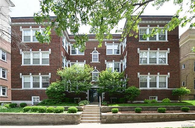 Stylish 3 bedroom, 2 bath garden level condominium has its own separate, private entrance to the building. The kitchen is open to the dining area and features granite counter tops, stainless steel appliances and a breakfast bar. Dining area is open to the living room - this whole area has great flow and function. Master bedroom suite has great closet space (3 separate, double door closets) and the bath includes separate tub and shower. Stackable washer & dryer are conveniently contained in their own closet within the master bathroom. Tile flooring throughout the main living areas is attractive and easy to maintain. All 3 bedrooms have newer carpet and ceiling fans. One, assigned GARAGE spot is a must during the winter! Additional dedicated storage unit included as well. Almost directly across from Forest Park and literally down the street from great DeMun shops, restaurants and small fenced, neighborhood park. Minutes from downtown, the airport, Downtown Clayton.