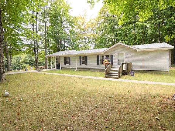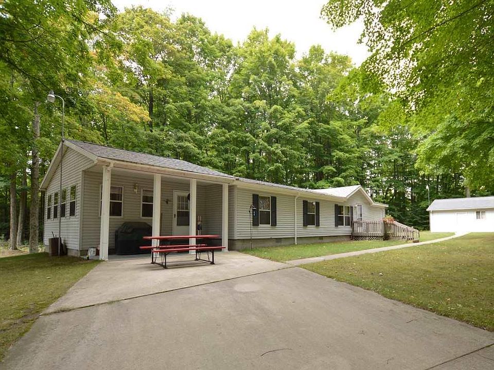 Drive through majestic pines to an exceptionally private and well maintained home nestled on 50 acres of hardwoods and pines. This spacious 3 bedroom, 2 bath ranch with a large three season room is so very neat and tidy. There's a 26 x 28 detached 2 car garage as well as a 30x40 pole barn with a workshop and guest quarters. This 50 acre well-managed parcel has miles of beautifully groomed walking trails. Only minutes to Crystal Mountain, Benzonia, Beulah and Frankfort. Close to thousands of acres of Federal land, snowmobile trails, lakes & rivers. This home is in the perfect location for the sports and nature enthusiast. Periodic timber income potential. Here's the home to enjoy your days in peaceful privacy!
