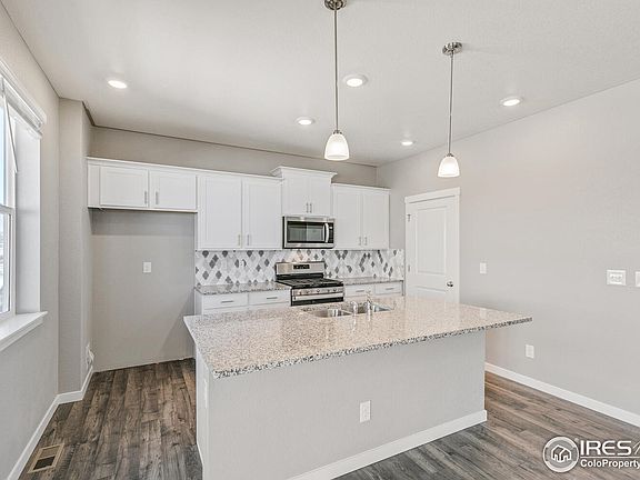 Move in Ready! Greeley's newest community offering a great selection of two story and ranch style homes, including DR Horton's newest floor plans. This featured home includes 3 bedrooms, a loft, study on the main floor, 2.5 baths, oversized 2.5 car garage, garage door opener, Smart Home Technology pkg., a tankless water heater and air conditioning included as standard features! The kitchen has beautiful gray cabinets, quartz counter tops, huge pantry and kitchen island! Builder 2-10 warranty and preferred lender incentives! Photos are representative and are not of the actual home.