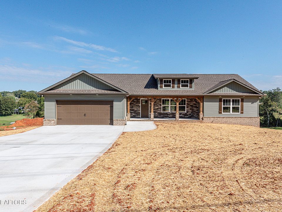 Just in time to pick your finishes on this new construction basement ranch in a beautiful country setting in Blount County, Tennessee. The main level features a two car garage, open kitchen, living, and dining space. The split floor plan with primary suite and two additional guest bedrooms offers great space for any family size, and there is a sprawling covered porch off the back to take in the country setting. Lower level will have approximately 1150 sq ft finished space with an additional office (could be used as another guest suite), bath room and large rec room. Additional unfinished space for storage, workshop, mower, etc. Exterior will have stone, brick and siding. Photos will be updated throughout completion.
