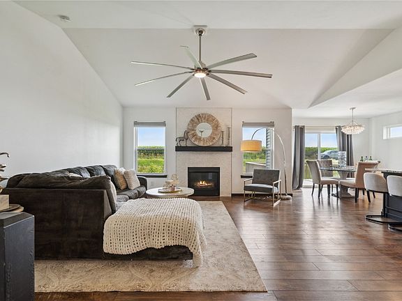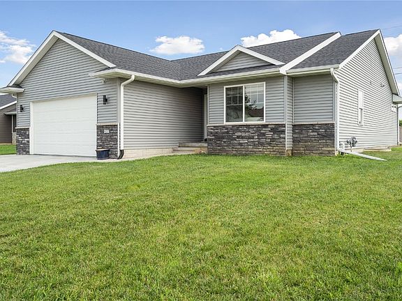 Wonderful location with pastoral views, perfect for starting off your days with inspiring sunrises. Just 5 years old, this 3-bedroom, ranch-style home is tastefully decorated so you can move in and start living your best life. You will love the open floor plan with vaulted ceilings in the great room and a natural gas fireplace. The kitchen is well-appointed with handsome granite countertops, ample white cabinets, and stainless appliances, including a natural gas stove and stylish hooded vent. Entertaining is a pleasure as guests gather around the island and dine in the spacious eating area. Or take the party outside through the slider door to the deck. Well-designed, with private primary bedroom on one side and two additional bedrooms and full bathroom toward the front of the home. A dedicated laundry room, equipped with washer, dryer, and soaker sink is conveniently located off the primary bedroom’s walk-in closet. Round off the primary suite with an ensuite bath enhanced with natural light. The drop zone keeps things organized as soon as you walk in from the attached 2-car garage. As your needs expand, the unfinished lower level is ready to meet your lifestyle. The space has egress windows that provide light and an option for 4th bedroom. An additional bath and rec room could be built-out, while still providing plenty of storage. New construction can’t compete with the quality, price, and location. College Community School District, close to Cedar River Trail, a walk to Hoover Park, and a quick trip to dining and entertainment. Pre-inspected for your confidence.