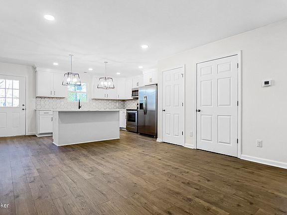 New construction. Split bedroom design. Open floor plan. Welcome to 6227 Hudson Creek Dr in the heart of Fern Creek. This Stunning 3 bedroom, 2 bathroom bricked ranch home offers a beautiful kitchen with lots of cabinet space, beautiful quartz countertop, hexagon title backsplash, and stainless appliances. Primary suite on one side with walk in his and hers closets, gorgeous tiled shower and duel sink vanity. I'm they other side 2 bedrooms with a full bathroom. Laundry room located near the primary and the 2 car garage. Outdoor space featuring a beautiful deck over looking the peaceful wooded back yard.