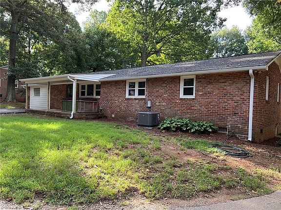 Location! Location! Location! Nice ONE LEVEL Brick Ranch in the Heart of Clemmons right off of Hampton Rd. 3 Bedrooms, 1.5 Baths. Amazing additional bonus room that could be used as a bedroom/office/living room/bonus room. This room has a fireplace and closet/laundry room. It also has a heating/cooling unit in addition to the central heat and air. Open Kitchen, Dining, and Den area. Separate living room. Updated Bathroom. New flooring in a large portion of the home. Driveway wraps all the way around to the back of the home. Storage building. Hot Tub Included!
