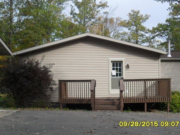 Beautiful setting for this home. Triple-wide manufactured home with detached 2 car garage and shed. Open floorplan with both family room and living room with fireplace. Has water damage and unfinished flooring. Being sold 'as is'.