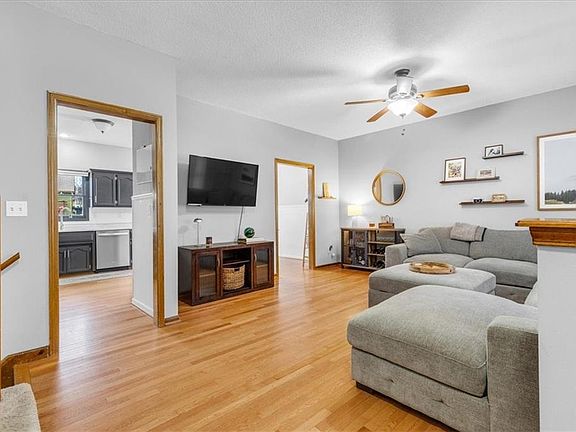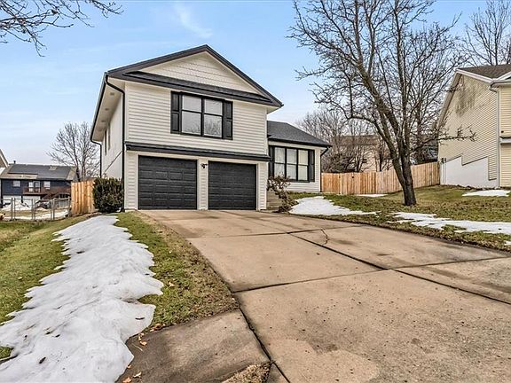 The curb appeal on this freshly painted home will have you charmed from the get go at the end of a quiet cul-de-sac street. Stunning finish levels throughout including a large open kitchen, hardwood floors in the living room, modern paint colors throughout and additional upgrades. Newer HVAC system. Fully finished rare walk out basement with additional living area/office or gym and a half bathroom below. Updated bathrooms. Close to shopping and North Kansas City School District.