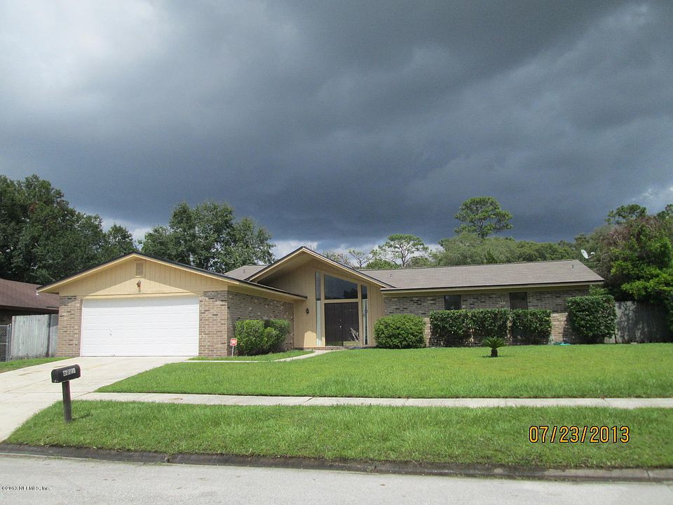 Looking for a great deal on a large family home? Well, this is it! Solid red brick home with almost everything new in the beautiful Tree Top Estates of western Jacksonville, FL. Nearly 2,000 square feet, three bedrooms, 2 full baths, office (could be 4th bedroom), living room, family room, dining room, indoor laundry, two car garage, large, private back yard. New roof, newer HVAC, appliances, flooring, cabinets, fresh paint throughout. Set on a large, beautiful cul-de-sac lot with view of a beautiful pond from the front yard. Don't miss this one!