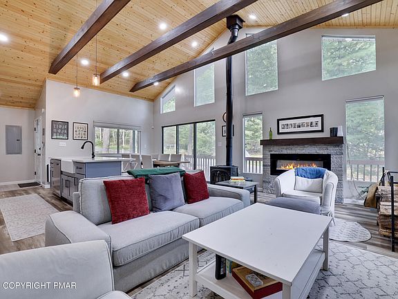 Welcome to this recently remodeled chalet in the heart of Saw Creek Estates, offering the perfect blend of modern comfort and Pocono charm. This one-floor living home features 3 bedrooms and 2 full bathrooms, designed with style, efficiency, and convenience in mind.