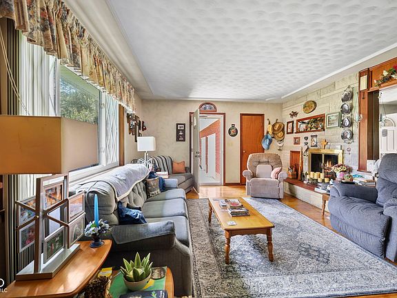 This charming home sits on 4 lots which total 1.57 Acres. Hardwood floors, a stone fireplace and open living, dining and kitchen areas will get you started. Updates that you will appreciate: Roof-10 +/- years, New Water Heater and Furnace which is 15 +/- Years old. Amazing space outside running all the way to the creek and the side yard all the way East to the Utility Pole. A fenced garden area, lots of space to design as you like. All of this can be enjoyed from the deck or the glass enclosed porch at the back of the garage. The peace and quiet is within reach. Come check out this gem of a property.