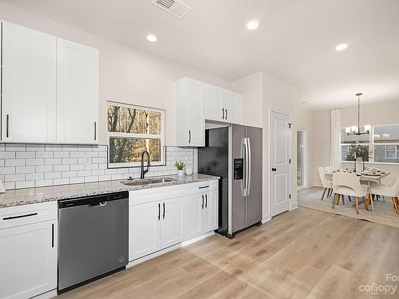 Move in ready! Qualifies for 100% mortgage financing with no PMI & no income limits. Stunning new construction single family home located at the end of a cul-de-sac in an established subdivision. Private setting surrounded by mature trees steps away from McIntyre Creek Greenway. Open floorplan featuring 9 foot ceilings on main & luxurious finishes such as granite countertops, white shaker cabinetry with soft close doors and dovetail drawers, subway tile backsplash & pendant lighting. Perfect home for first time buyers & investors. Loaded with upgrades including luxury vinyl plank flooring throughout, 6 foot Pella windows & doors, stainless steel appliances including side by side fridge and black hardware/plumbing fixtures. Primary suite offers walk in closet and ensuite bath with shower & dual vanity. Guest bath offers a tub & dual vanity. Main level features a home office & spacious dining area. Complete with 1 car garage, covered front porch & rear patio. Builder warranty included.