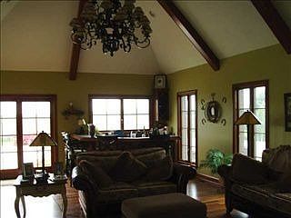Gorgeous custom built home located in an upscale Pendleton subdivision. This all brick home sits on a large professionally landscaped lot. As you enter the foyer you will love the comfortable feel of the cherry hardwood floors and the openness the floor plan gives. The family room is open to the kitchen and dining nook and has a gas log fireplace. The great room has very tall vaulted ceilings and a bar area the overlooks the patio and swimming pool. The master suite is located on the main level.