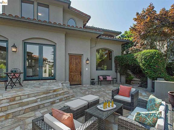 Enjoy lounging on the huge front deck watching the sun go down over the Bay. This custom built 2002 home sits high above the street so that one experiences the feeling of "getting away from it all". Experience the ultimate in convenience when you pull into the two car garage with bags of groceries and load them into the elevator. Family time is always relaxing in the spacious kitchen/family room that is level out to a cozy rear patio. If you have an au pair or need an office that is away from the house, the fourth bedroom has its own bath and a separate entrance. How does it get any better than this? Open this weekend!