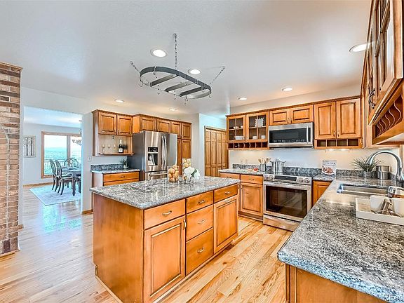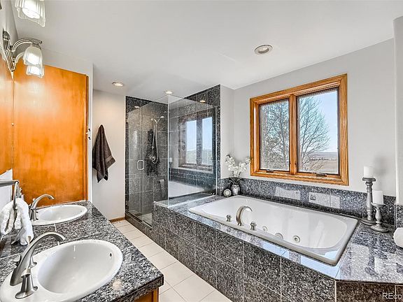 If you saw this home previously, you should really take another look! Freshly painted with new carpets and good vibes for your new beginning! This 35-acre sanctuary offers plenty of room to roam and unobstructed views of the Colorado Front Range all within minutes to urban amenities including medical, shopping, restaurants, etc. Enjoy a slower pace living in this ranch home featuring raised & vaulted ceilings, newly painted walls & carpet throughout, updated eat-in kitchen coupled with a custom hearth area offering ample storage, granite hard surfaces & stainless-steel appliances; spacious great room with floor to ceiling windows that overlook rolling hills and a 180 degree view of the mountains topped with an open dining room and access to a new entertainment deck. Other main floor amenities include two well appointed bedrooms, a shared full bath, a spacious master suite with a private 5pc. ensuite, and an oversized laundry room. The lower level is perfect for apartment type living with a master sized bedroom, shared ¾ Bath, wet bar that could easily be converted to a kitchenette, large open area perfect for additional family room and game area and has a couple larger unfinished areas for those looking to add amenities including bed, media, fitness, or craft/workshop rooms. Property is also equipped with two different outbuildings ready for you to store any current toys or start planning for future property use.