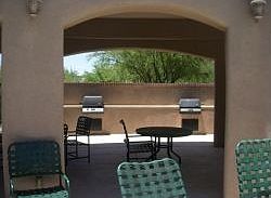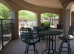 Beautiful 2bdm 2ba + Den (Used as 3rd Bedroom or Office) on a large corner lot located in The Villages of La Paloma. This home is located in one of Tucson's premiere guarded communities, the lot is close to the community pool/spa and golf course. Tile Floors throughout the living room and kitchen, new carpet in bedrooms, vaulted ceilings, ample cabinet space, granite counter tops in the kitchen, sky lights, ceiling fans, alarm system, washer and dryer hookups (both gas and electric), gas fireplace, built in Entertainment Center in the Living Room. Relax outdoors with an extended patio featuring a built in outdoor fireplace, pond and beautiful vegetation (on a drip system).