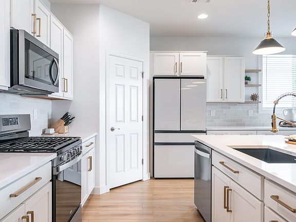 This light and bright 4-bedroom, 3-bath home showcases a thoughtfully designed floor plan featuring a over-sized living space/mother-in-law suite with an en-suite bath—perfect for guests or multigenerational living. The home offers upgraded flooring throughout, extra cabinetry in kitchen, and soft-closing cabinets for added convenience and style. Enjoy beautifully tiled bathrooms and designer finishes that elevate every space. With no neighbors behind, you'll love the peace and privacy of the backyard. Nestled in a newer community with walking paths and easy access to shopping, dining, and top-rated schools—this home truly has it all!