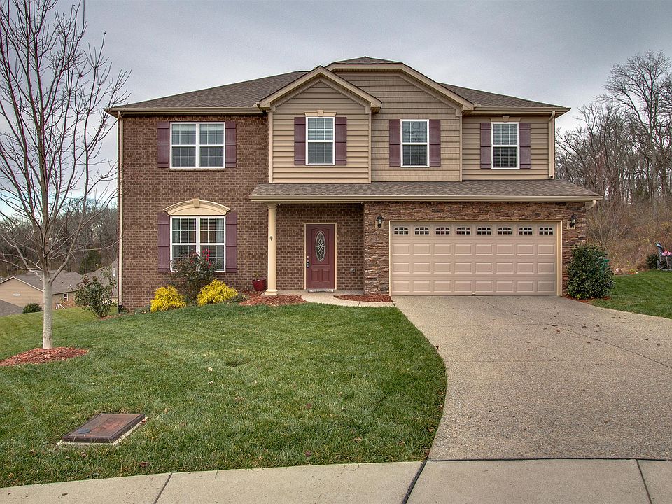 Love the panoramic sunset views at this home from the back deck! Extra LR windows to enhance your view: Upgrades throughout; granite counters in gourmet kitchen; new kit cabinet hardware; ceiling fans throughout; large 1st fl master suite with garden tub: each br has shower/tub; pull down attic storage; common area next to home maintained by HOA