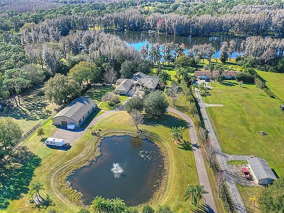 ULTIMATE LAKE OASIS! Come home grab a drink & sit out on the dock overlooking beautiful Red Bug Lake. Or better yet, walk from your office, take a dip in the heated pool, then grab that drink & head to the lake. This is 4.85 acres of pure lakefront living. Impeccably maintained, this property exudes PRIDE IN OWNERSHIP from the paver driveway to the lake view to the pool area to the detached In-Law Apartment, this house is built to entertain, be a multigenerational homestead or be just a private executive hideaway. Main house has 4 bedrooms (or 3 bedrooms & an office). Spectacular views exist from the large Master Bedroom, the Living Room & the Great Room/siting area. A gas dual-sided fireplace is enough to heat the sitting room/Great Room situated next to the kitchen. The kitchen features granite countertops, propane cooktop, dual oven, 42 in solid wood cabinets, a reverse osmosis water, stainless steel appliances & much more. Large Master Suite has the view, walk in closets, a spacious bath w/ granite, & a garden tub. Add the 3 car garage, many updates; an amazing entrance w/ mosaic tile & large 8 foot glass art doors, along w/ lots of living spacethis home is perfect to entertain. Next to the home is a 1-bedroom in-law apartment, a full office w/ bathroom, a large workshop & storage space. There is plenty of room for an RV on the property. Horses are allowed. Newer well pump, roof, & dock. A whole-house generator w/ lg propane tank provides the peace of mind that comes living this lifestyle.