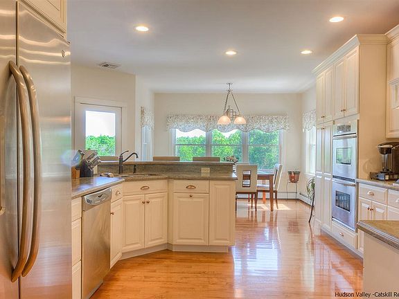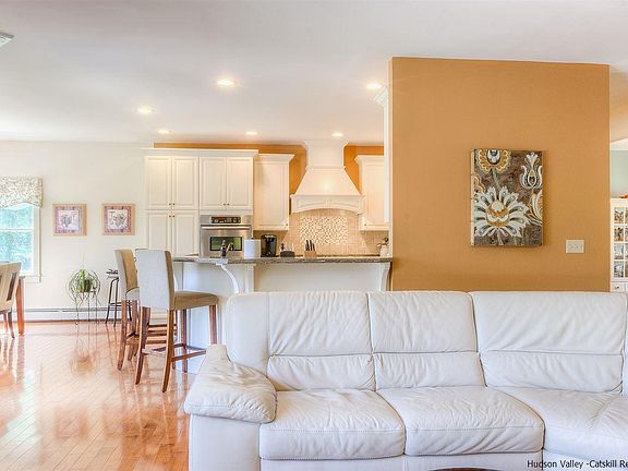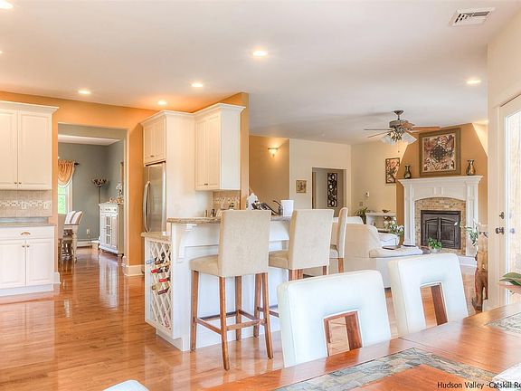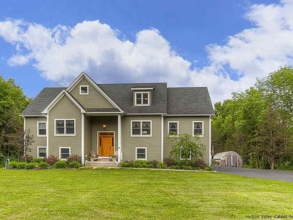 Country living awaits you here in this desirable custom built 4 bedroom, 4 and half bath contemporary home built in 2012, with all the bells and whistles. Sprawling sun drenched spaces with open concept lends itself to entertaining and relaxation. Breathtaking custom kitchen with corian counter tops, custom backsplash, gas stove, eat-in area with large bay windows overlooking the lush park-like backyard, spacious living room with center stone gas fireplace, two bedrooms with jack and jill shared bathroom on one wing of the house, and master suite with ensuite custom master bath on the other wing. Jacuzzi tub, standing shower, walk-in closet and double vanity. Second floor is a finished walk-up attic with another private room and full bathroom. Basement is fully finished ideal for a game room/media room, summer kitchen, full bathroom, walk-out to pool area and garage access. Birch hardwood floors, circular pool, cement patio lower area, and upper deck off custom kitchen, 8 zone propane heating, central air, heated garage with slop sink. Huge over sized 3 car garage attached to house, 2-story workshop with electric and garage door, additional shed by garden area, heated (wood fired) greenhouse, stainless steel appliances, huge finished attic area with heat and air conditioning, finished basement. Blacktop driveway with ample amounts of parking. Riverfront property with dock to walk down to waters edge. Mohonk Mountain house and Mnnewaska are mins away. Robberio winery less then a min a way. New Paltz School Distict!